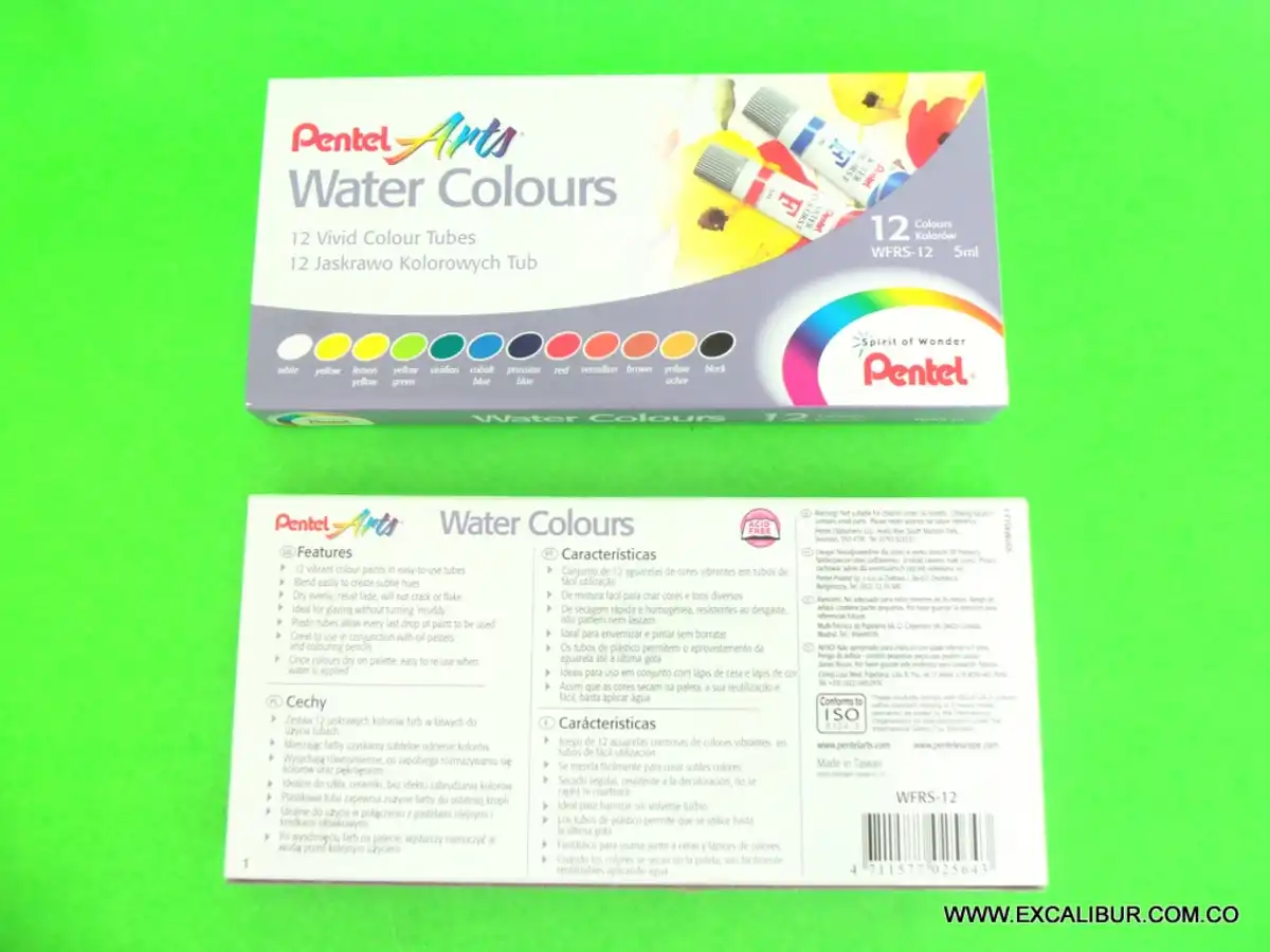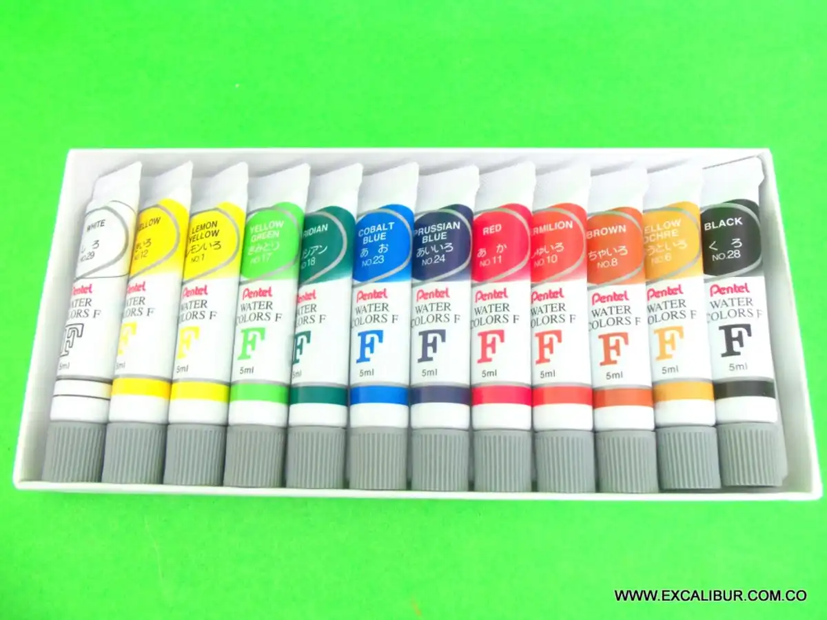 Set x12 Acuarela de excelente calidad que facilita la mezcla de los colores y una transparencia perfecta la cual permite una excelente armonía entre los colores. (Cada tubo viene x5ml)
