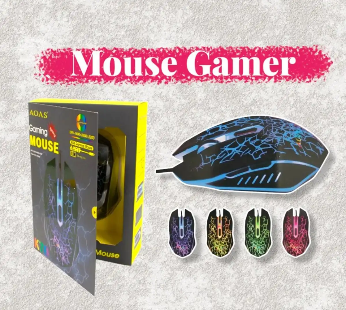 Mouse tipo gamer de marca AOAS referencia K10, diseño ergonómico, fácil de usar, con cable y conexión tipo USB, ideal para los momentos de largo juego y también para las labores mas extensas o mas sencillas del trabajo