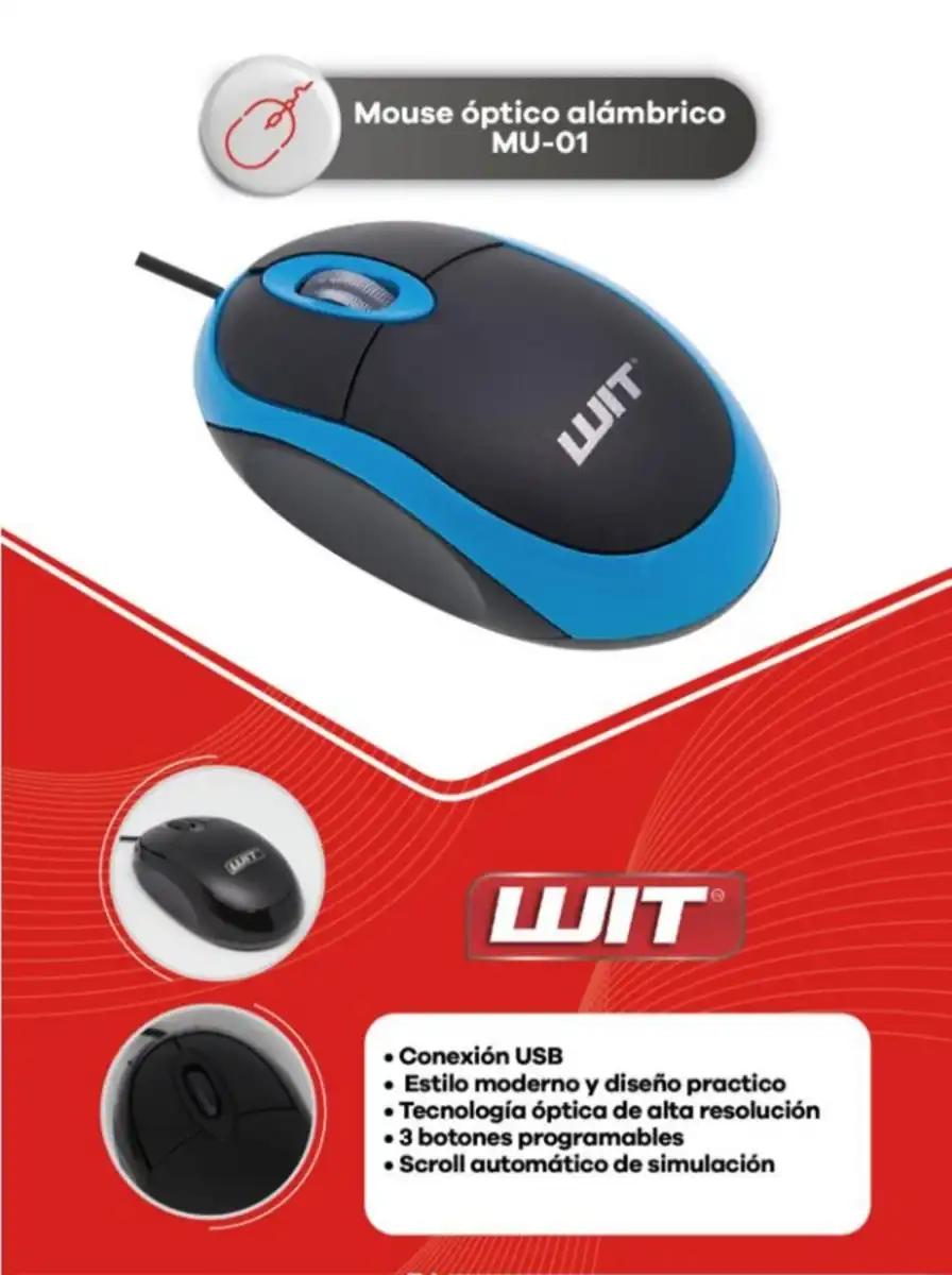 El Mouse WIT MU01 es un dispositivo ergonómico y de alta precisión diseñado para mejorar la experiencia de uso en cualquier entorno de trabajo o entretenimiento. Disponible en dos colores elegantes, combina funcionalidad y estilo, adaptándose a cualquier espacio. Con su diseño compacto y peso ligero, proporciona una navegación fluida y cómoda durante horas. Este mouse es compatible con sistemas operativos actuales y se conecta de forma rápida, ideal para usuarios que buscan practicidad y rendimiento en un solo dispositivo.