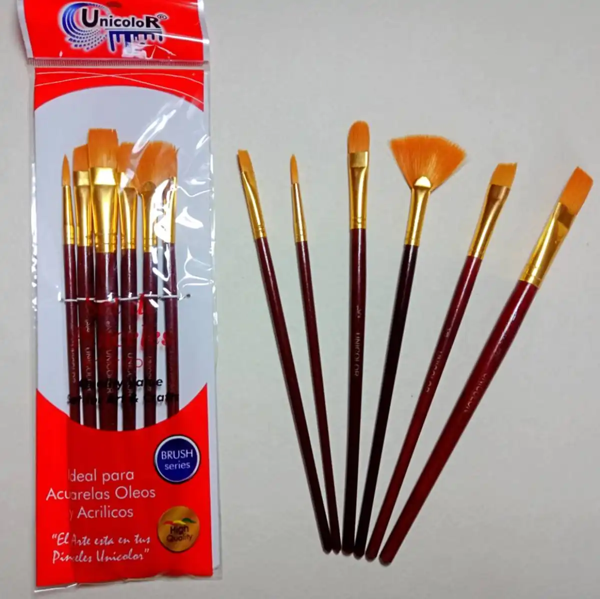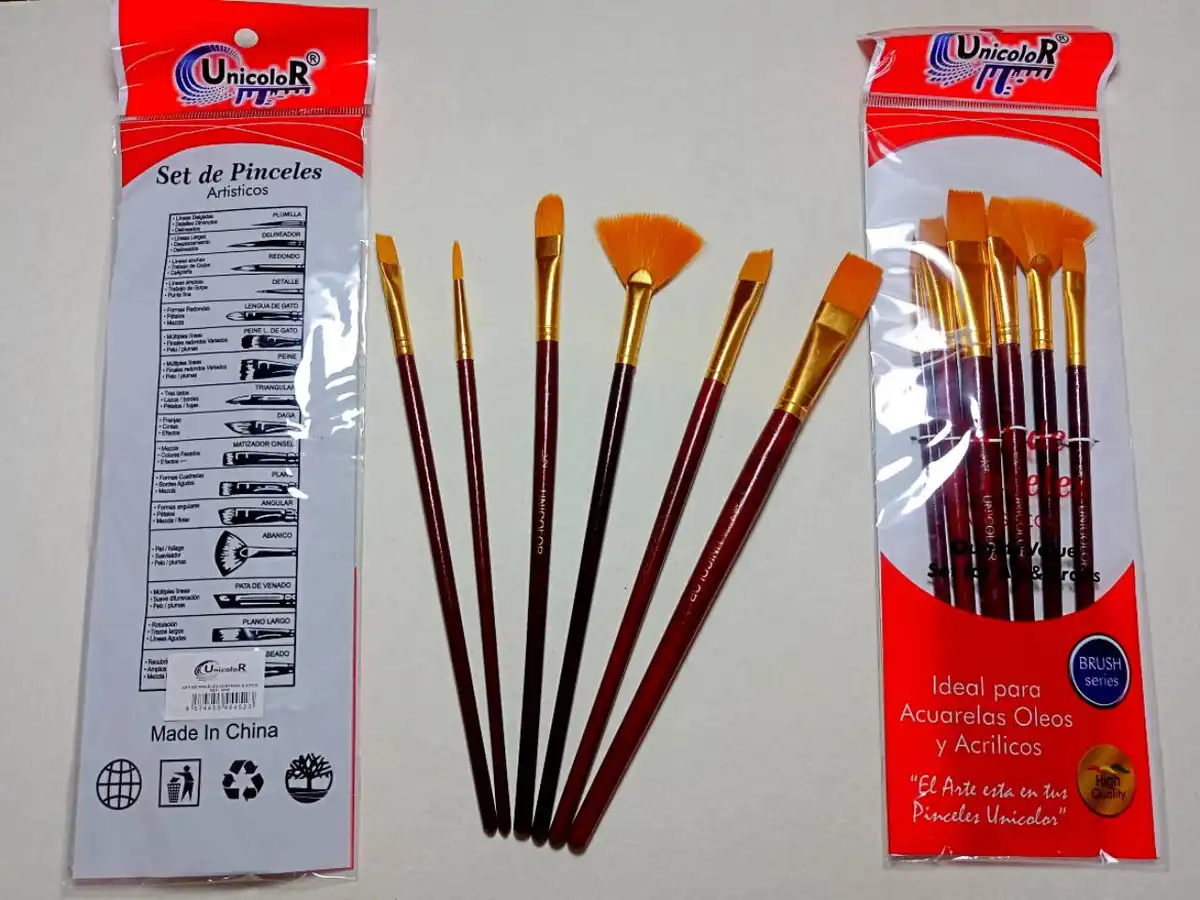 Pinceles Unicolor x6 con abanico para oleos y acrilicos.