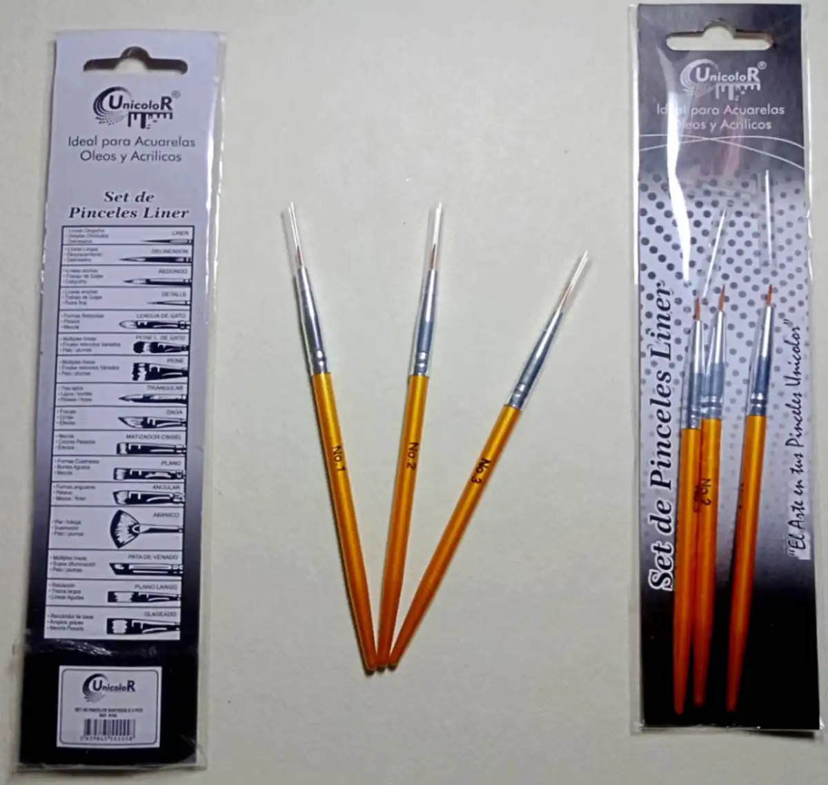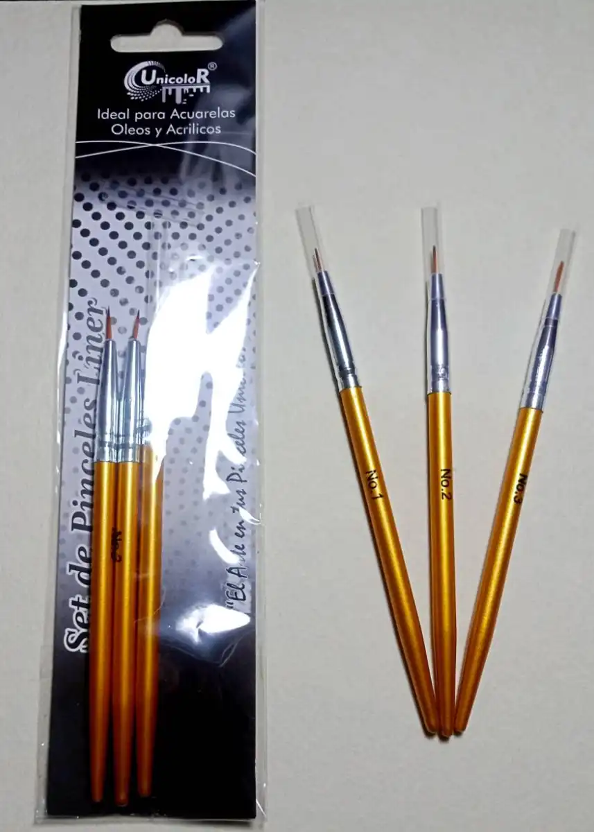Pinceles Unicolor x3 Liner para oleos, acurelas, temperas y acrilicos No. 1,2,3