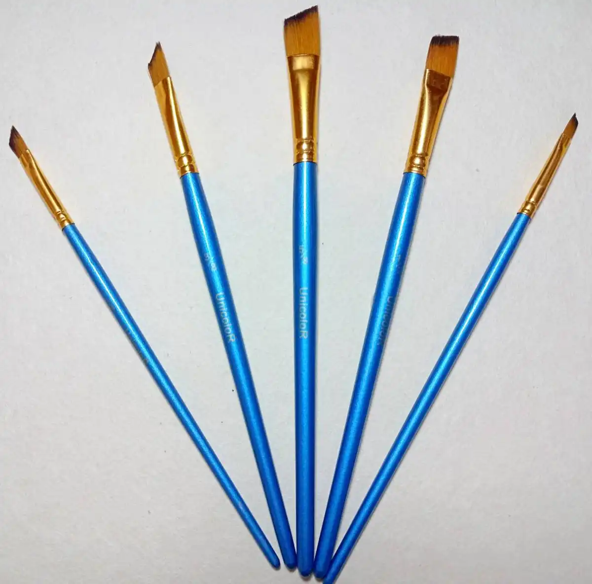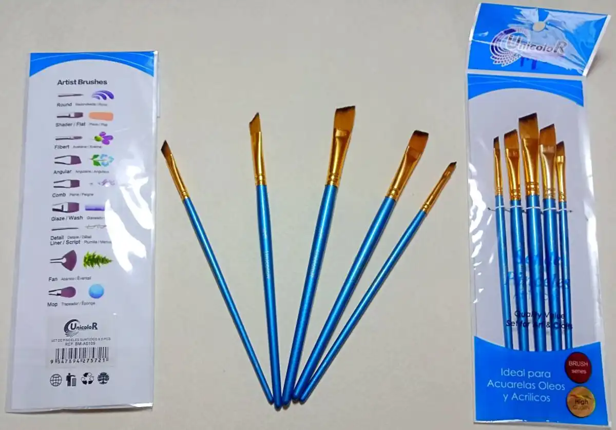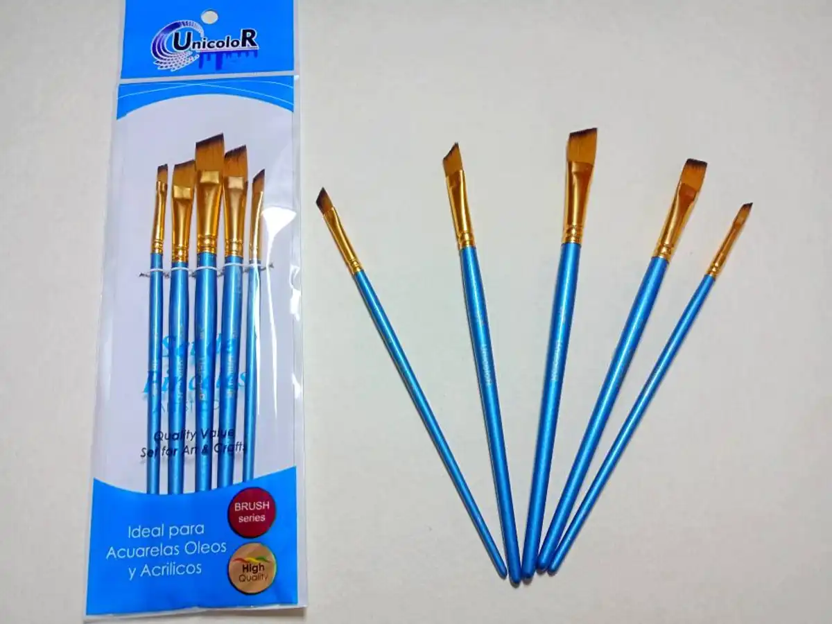 Pinceles Unicolor x5 Angular para oleos, acuarelas y acrilicos.